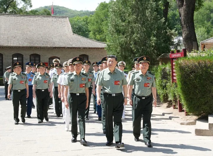 6月17日至19日,中央軍委政治工作會(huì)議在陜西延安召開(kāi)。中共中央總書(shū)記、國(guó)家主席、中央軍委主席習(xí)近平出席會(huì)議并發(fā)表重要講話。這是17日下午,習(xí)近平帶領(lǐng)軍委一班人和各部門(mén)各單位主要負(fù)責(zé)同志瞻仰王家坪革命舊址。新華社記者 李剛 攝