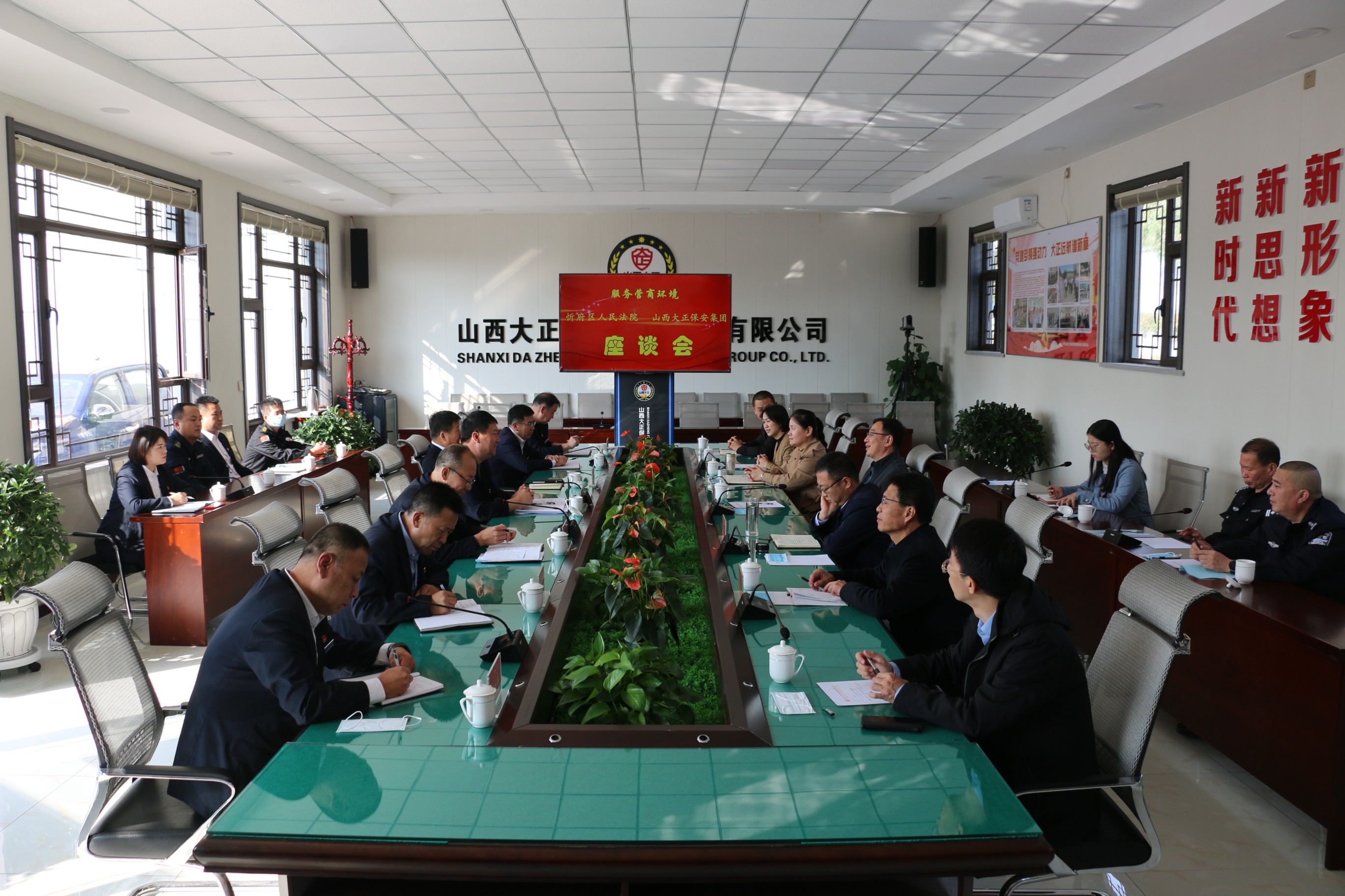 10月14日,忻府區(qū)人民法院黨組書記、院長韓進(jìn)堂攜領(lǐng)導(dǎo)班子及相關(guān)部門負(fù)責(zé)人一行到山西大正保安服務(wù)集團有限公司走訪調(diào)研,了解企業(yè)生產(chǎn)經(jīng)營情況及司法需求,為企業(yè)提供司法服務(wù),助力企業(yè)紓困解難。集團公司黨委副書記、總經(jīng)理趙培宏等班子成員參加調(diào)研座談會。