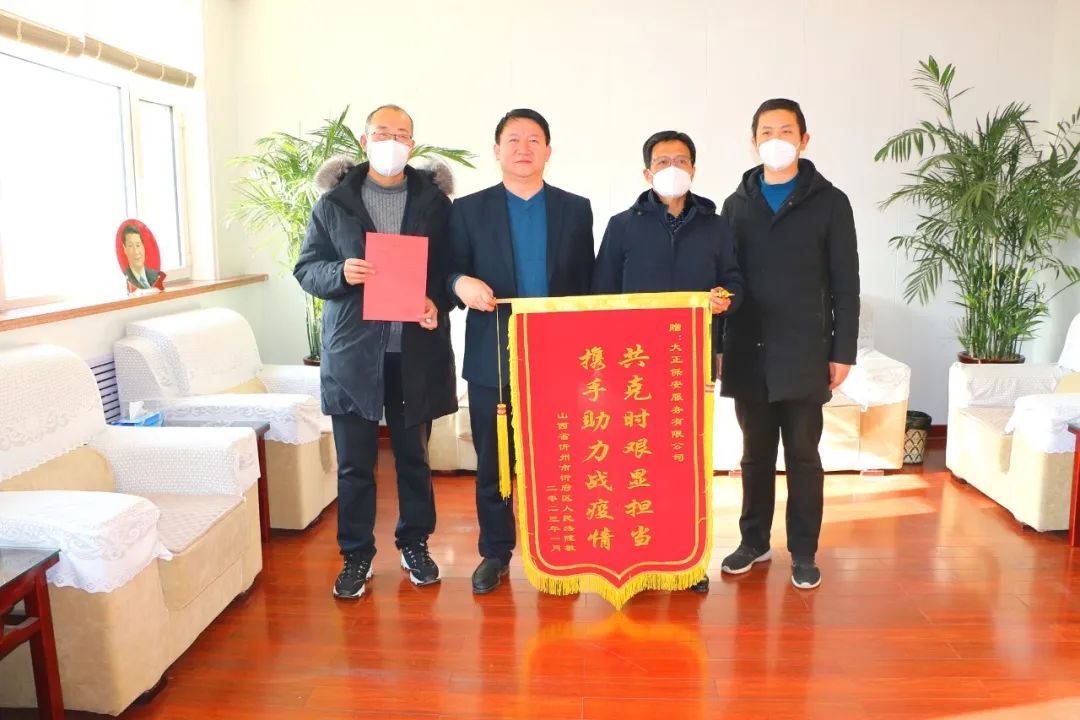1月9日上午,忻府區(qū)法院黨組成員、副院長黃偉,黨組成員、政治部主任焦旭林帶著寫有“共克時艱顯擔(dān)當(dāng) 攜手助力戰(zhàn)疫情”的錦旗和一封感謝信來到了山西大正保安服務(wù)集團(tuán)有限公司,表達(dá)對保安公司在疫情防控中無私無畏、甘愿付出的誠摯謝意。大正保安集團(tuán)公司黨委副書記、總經(jīng)理趙培宏、黨委委員、副總經(jīng)理王明生接洽。自2022年11月6日忻府區(qū)突發(fā)疫情以來,山西大正保安服務(wù)集團(tuán)有限公司駐忻府區(qū)法院勤務(wù)點(diǎn)的隊員們在陳曉東隊長的帶領(lǐng)下,積極響應(yīng)疫情防控各項要求,除在保障法院關(guān)鍵時期平穩(wěn)運(yùn)行外,保安公司職員還能夠挺身而出,積極投身防疫點(diǎn)值守、后勤保障、車輛運(yùn)行、機(jī)關(guān)防疫消殺等方面,以實際行動為忻府區(qū)法院疫情防控及機(jī)關(guān)安保工作做出了突出貢獻(xiàn)。越是緊要關(guān)頭,越能映照初心;越在關(guān)鍵時刻,越顯擔(dān)當(dāng)使命。面對突如其來的疫情“大考”,大正保安集團(tuán)積極響應(yīng)號召,主動、迅速地配合我院防疫部署,精心服務(wù)群眾、嚴(yán)格執(zhí)行命令、防范意識到位,助力織密織牢疫情防控網(wǎng),充分展示了大正保安人的職業(yè)素養(yǎng)與責(zé)任擔(dān)當(dāng)。幾年來,山西大正保安服務(wù)集團(tuán)有限公司駐區(qū)法院全體職員,以法院為家,服從工作需要,積極參與各項審判事業(yè),做到聞令而動,成為不可或缺的中堅力量,為法院跨越式發(fā)展提供了巨大支持。