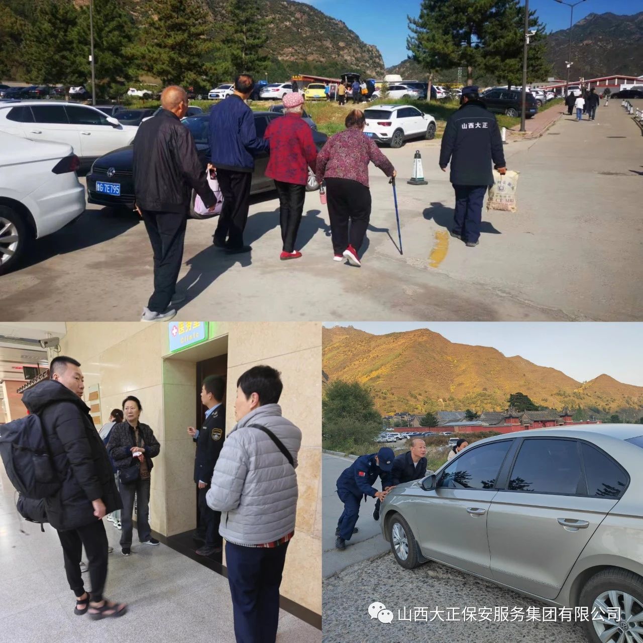 9月28日下午,山西大正保安服務(wù)集團有限公司抽調(diào)精兵強將200余人,開赴五臺山風(fēng)景區(qū)執(zhí)行勤務(wù),全體出勤隊員精神煥發(fā),士氣高昂,整裝出發(fā),他們舍棄“中秋”與家人的團聚,放棄“雙節(jié)”假日休息的機會,以大局為重,忠誠奉獻,擔(dān)當(dāng)作為。當(dāng)晚指揮部與五臺山風(fēng)景名勝區(qū)管委會協(xié)調(diào)溝通,確定執(zhí)勤崗位及人數(shù),9月29日全員上崗,開始為期一周的安保勤務(wù)工作。執(zhí)勤隊員24小時不間斷對游客、車輛進行指導(dǎo)、指引,確保游客行得順、玩得暢。10月5日上午,此次安保勤務(wù)工作圓滿完成。