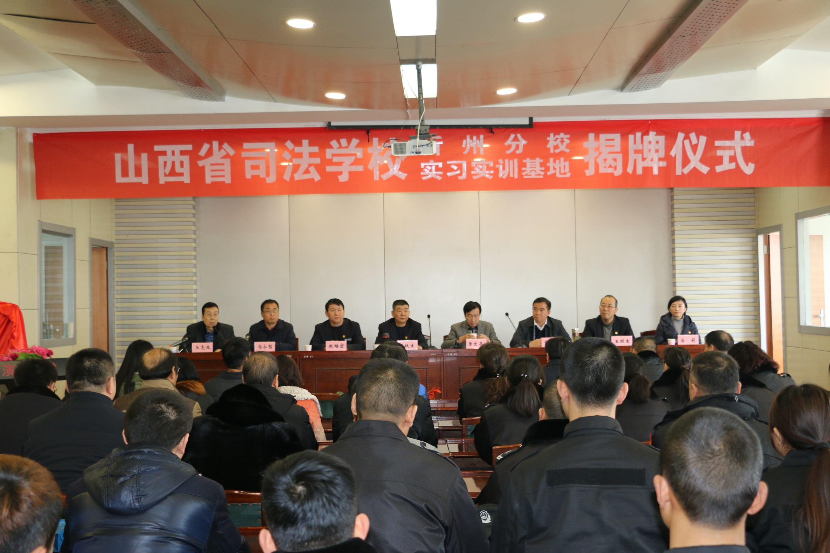 山西省司法學校忻州分校于2018年1月8日在我公司實訓基地掛牌。公司總經(jīng)理張躍生、副總經(jīng)理趙培宏、王明生、總經(jīng)理助理羅鵬生、蔡車峰、高秀生、宋林兔等領導參加了掛牌儀式。