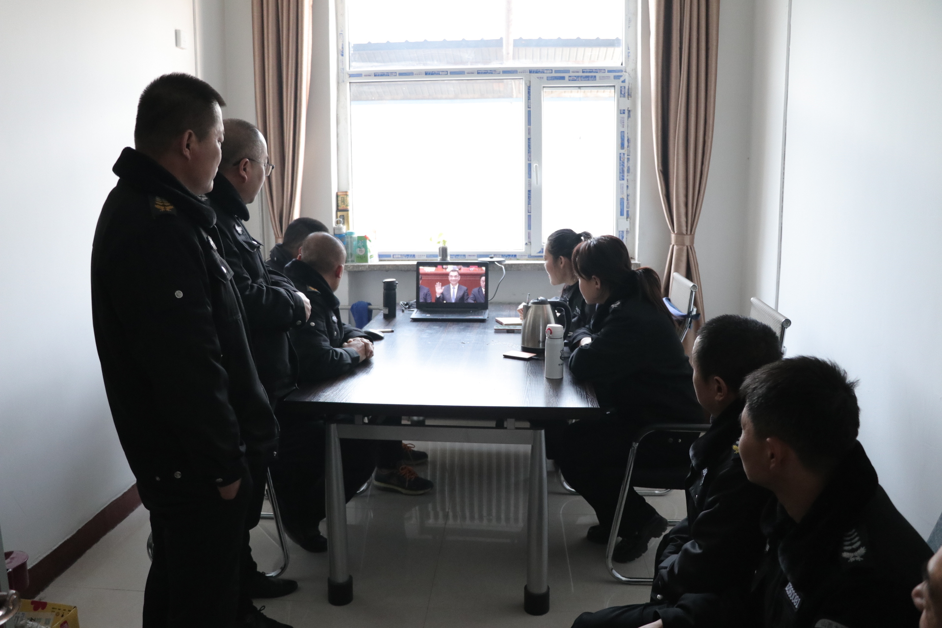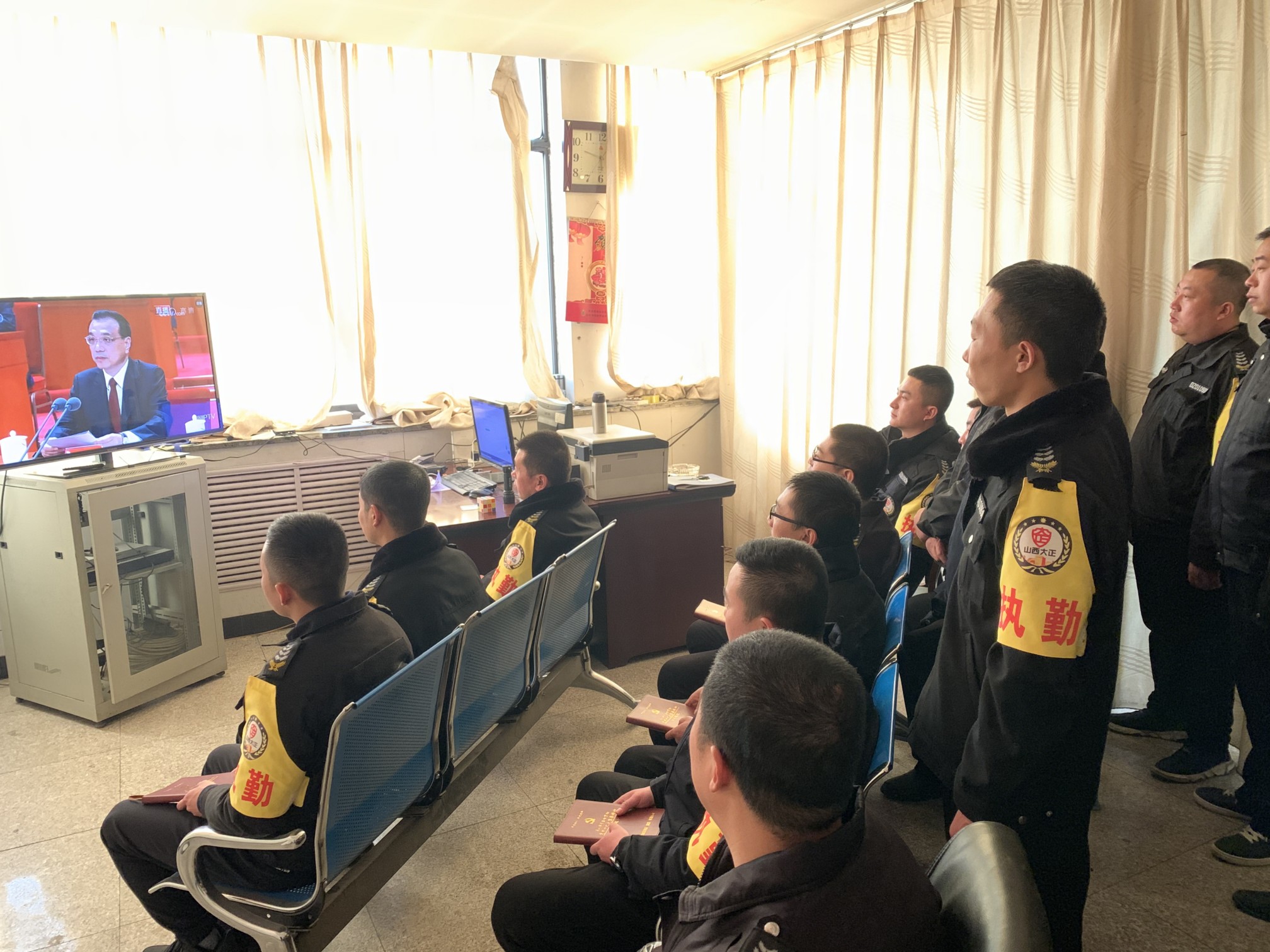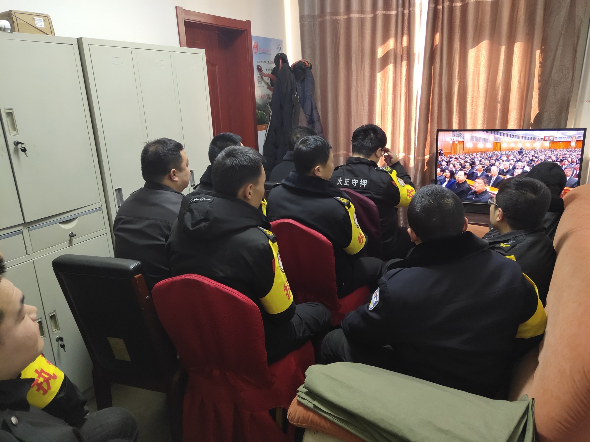 (守押靜樂(lè)中隊(duì)組織收聽(tīng)、收看大會(huì))