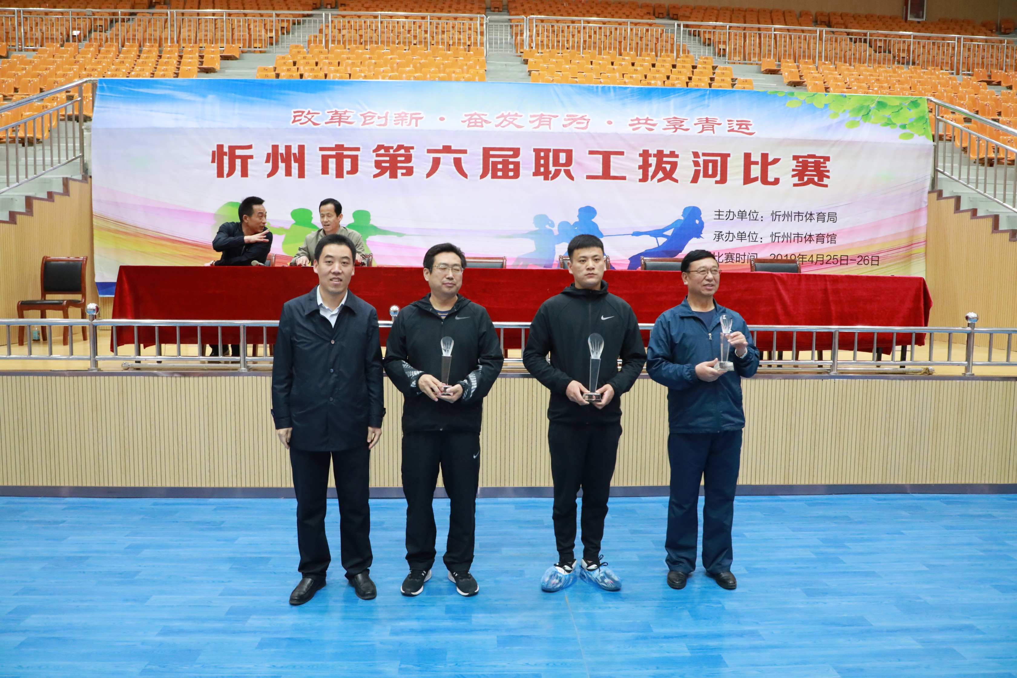 4月25日至26日,“改革創(chuàng)新·奮發(fā)有為·共享青運(yùn)”忻州市第六屆職工拔河比賽在跤鄉(xiāng)體育館隆重舉行。