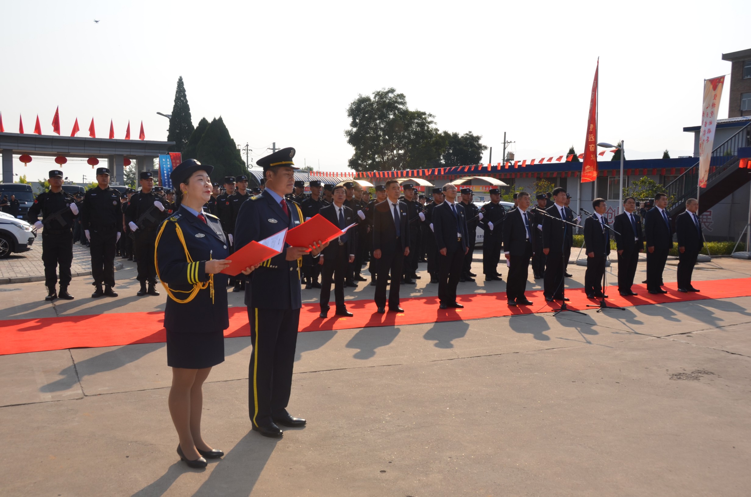 在中華人民共和國成立70周年即將來臨之際,為進一步提高廣大干部職工的愛國意識,營造濃厚的愛國愛企氛圍,激發(fā)正能量、提升凝聚力。9月27日,山西大正保安服務有限公司在公司城南駐地隆重舉行莊嚴的升旗儀式。黨委書記、董事長張躍生作重要講話,公司黨委委員、副總經(jīng)理趙培宏主持升旗儀式。王明生、邢春生、張瑞東、呂雙明等公司領導、機關各單位及基層九個分公司的400余名干部職工參加儀式。