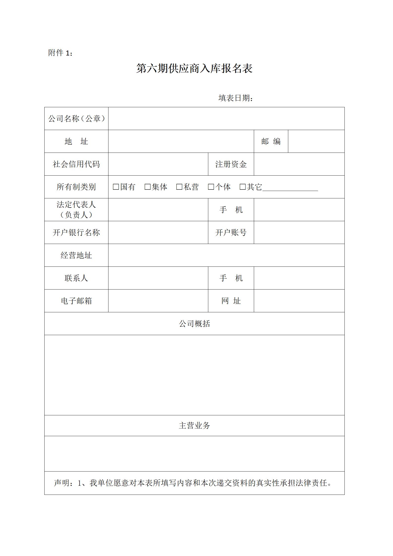 1、供應(yīng)商入庫報名表(見附件);