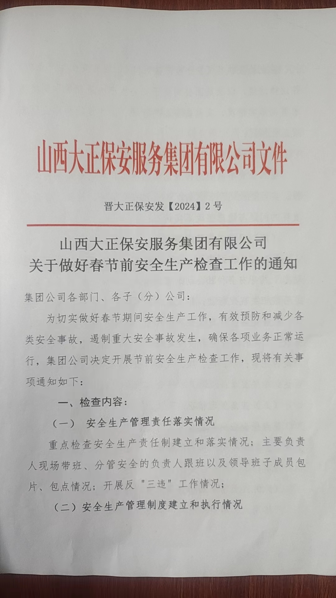 集團(tuán)公司關(guān)于做好春節(jié)前安全生產(chǎn)檢查工作的通知