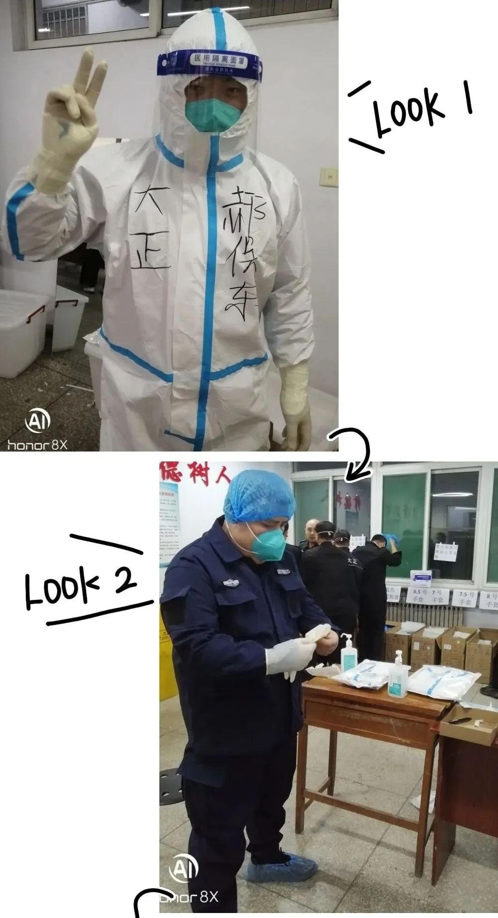 11月16日晚上6點(diǎn),是他們第一次穿著防護(hù)服進(jìn)入隔離區(qū)為隔離人員高風(fēng)險(xiǎn)近距離服務(wù)。關(guān)向宇同志身體高大肥胖,穿脫防護(hù)服要比常人艱難的多,為盡職責(zé)完成任務(wù),自己克服困難,知難而上,跨入隔離區(qū)。二人在隔離區(qū)服務(wù)近四個(gè)小時(shí),出來時(shí)滿身流著汗水,第二天兩人都發(fā)生了身體不適狀況,身體發(fā)冷、咳嗽等癥狀,但是他們沒有畏縮,提振精神,繼續(xù)馬不停蹄的干活,該干啥干啥,該做什做什,忙里又忙外。