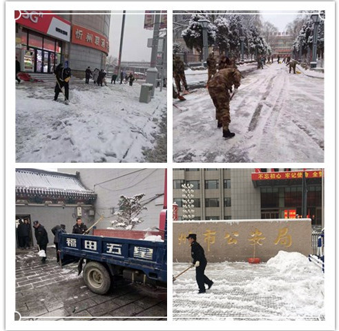1月5日,2020年紛紛揚(yáng)揚(yáng)的一場(chǎng)大雪飄然而至,秀容大地銀裝素裹之間也讓道路覆蓋上了一層厚厚的積雪,不僅給市民出行帶來(lái)嚴(yán)重不便,也為公司開(kāi)展工作帶來(lái)諸多安全隱患。為此,公司主要領(lǐng)導(dǎo)親自安排,忻州城區(qū)及各縣分支機(jī)構(gòu)迅速行動(dòng)起來(lái)清除積雪,及時(shí)清掃各自駐地和周邊道路的積雪,用實(shí)際行動(dòng)為我市創(chuàng)文工作做出貢獻(xiàn)。