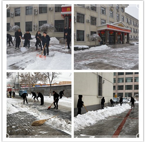 組織機(jī)關(guān)干部職工清掃辦公區(qū)域和周邊道路積雪,活動(dòng)中,凜冽的寒風(fēng)阻擋不住大家高漲的熱情,齊心協(xié)力,配合默契將積雪清理干凈,使院內(nèi)及周邊道路恢復(fù)了暢通。