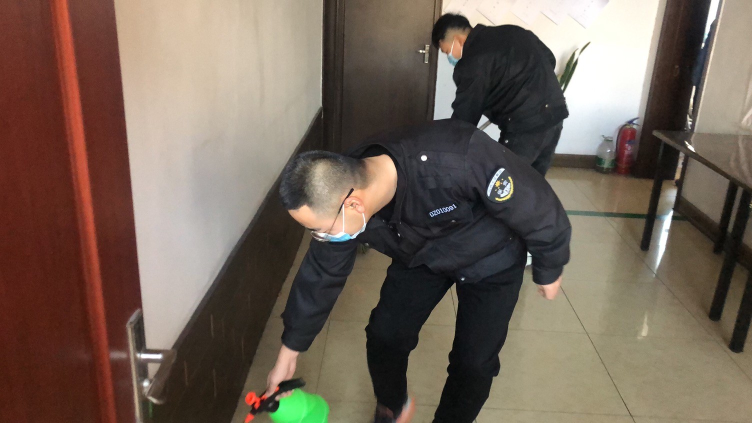 在集體學習集團公司文件后,張小平要求:一是加強衛(wèi)生知識宣傳。利用微信群、電子屏、宣傳欄等廣泛宣傳疫情防控衛(wèi)生健康知識,號召全體監(jiān)控人員養(yǎng)成講衛(wèi)生、愛衛(wèi)生、勤洗手等良好的個人衛(wèi)生習慣,做好自我防護工作。自覺佩戴口罩、手套,勤洗手、勤消毒、勤通風,不斷提高自身免疫力和抵抗力。二是嚴抓環(huán)境衛(wèi)生整治。組織在崗人員全面清理站區(qū)內所有部位環(huán)境衛(wèi)生。對監(jiān)控室、食堂、衛(wèi)生間等進行清潔打掃,做到無死角、無盲區(qū)。加大清掃頻次,減少垃圾滯留時間,鏟除病毒生存空間。尤其對肢體接觸頻繁的門把手、洗手臺、水龍頭等部位做到重點消毒、反復擦拭,確保不放過任何一個遺漏部位。食堂工作人員每天對食堂、操作間、庫房等衛(wèi)生進行徹底打掃和清洗,及時清理廚房垃圾。三是嚴格做好自身防護。上崗前由組長檢查上崗人員手套、口罩等防護用品的佩戴情況,佩戴不規(guī)范的及時糾正。各科室加強檢查,對在崗期間未嚴格佩戴防護用品人員嚴格規(guī)定。四是“堅守安保崗位,及時監(jiān)督警示,真誠服務到位,助力戰(zhàn)“疫”完勝。”監(jiān)控中心日常工作就比較繁重,監(jiān)控、核查、布防、撤防、登記、提示等,24小時的值守。在人員緊張的情況下,通過語音呼叫對講及時提醒庫內人員戴好口罩、禁止吸煙等情況。簡潔的話語,誠摯的提醒,在防控冠狀病毒嚴峻形勢下,監(jiān)控中心沒有一名員工退縮。