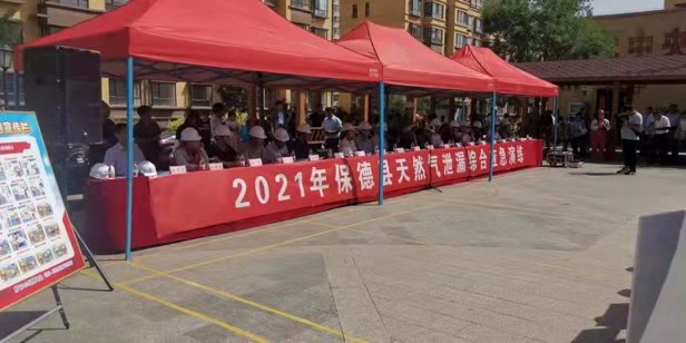 演練科目為上午9時20分,保德縣新城區(qū)惠民家園東區(qū)七號樓燃氣管道盜用燃氣造成室內(nèi)燃氣大量泄漏,引發(fā)室內(nèi)燃氣爆燃起火,燃燒引燃廚房內(nèi)雜物,且爆燃造成的陽臺玻璃破碎散落,周圍群眾較多場面混亂,造成一人輕傷一人被困,現(xiàn)場人員立即向燃氣公司報警。