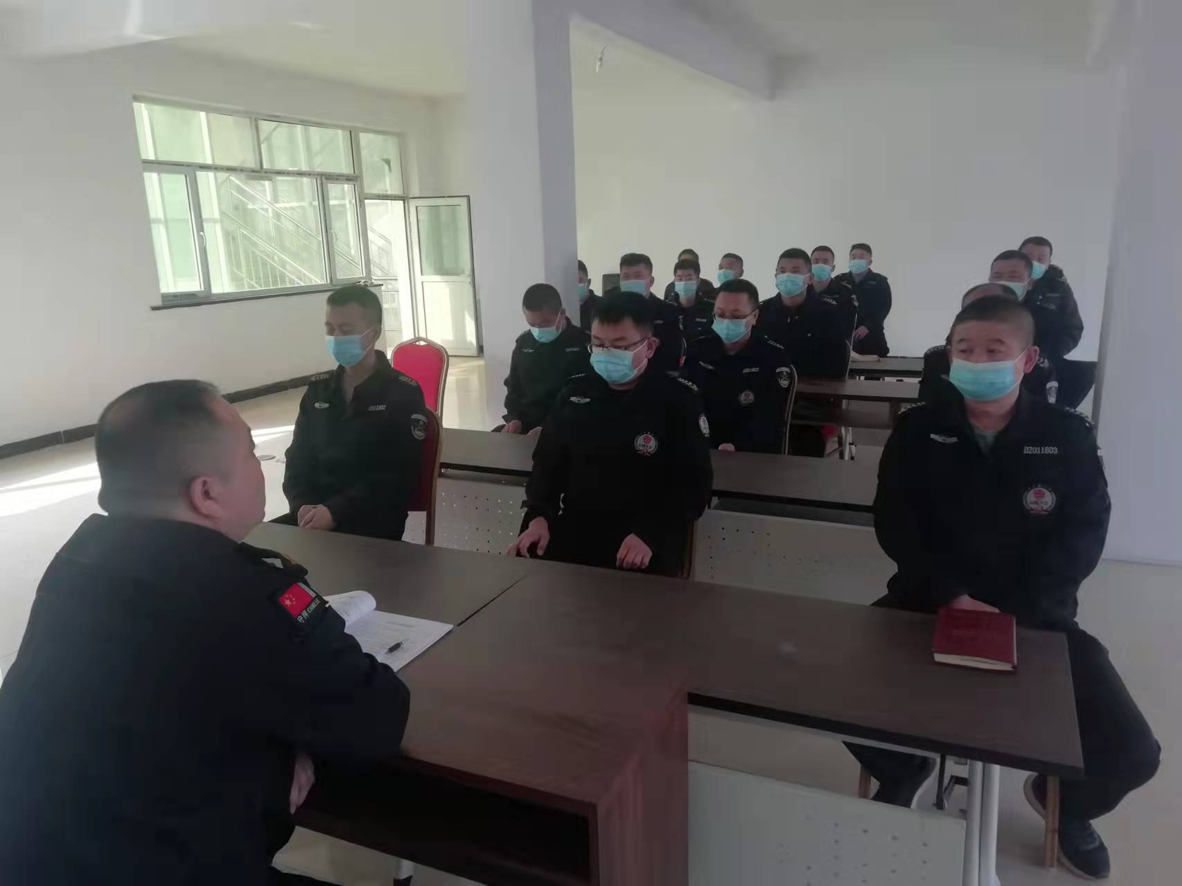 3月21日上午,偏關(guān)中隊召開農(nóng)商行監(jiān)控工作布署會,全體守押人員、農(nóng)商行監(jiān)控員參加會議。由中隊長高虎生帶領(lǐng)大家共同學(xué)習(xí)公司下發(fā)“農(nóng)商銀行監(jiān)控中心人員調(diào)閱要點”