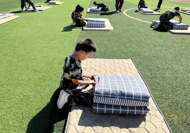 在為期三天的軍訓活動中,四位教官精心組織、細心教導進行了隊列隊形、軍體拳、內(nèi)務整理等科目訓練,同學們在教官的教導下不僅熟練掌握各項基本動作,同時還磨煉了同學們堅強的意志品質(zhì),幫助他們形成了良好的行為習慣。在匯報表演時,同學們整齊劃一的隊形隊列、反映迅速動作嫻熟的颯爽英資贏得了校領導和老師、家長代表的熱烈掌聲。