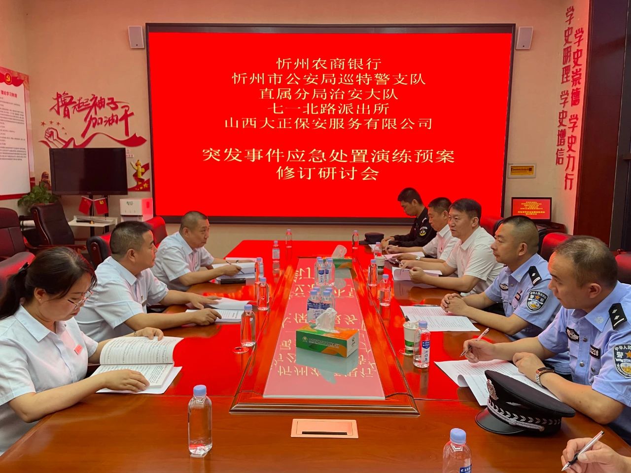 6月26日,山西大正億通保安安全技術(shù)有限公司與忻州農(nóng)商銀行和平西街營(yíng)業(yè)部聯(lián)合舉行銀行自助設(shè)備防打砸損壞、防非法安裝設(shè)備聯(lián)合應(yīng)急演練,山西大正保安服務(wù)集團(tuán)有限公司黨委書記、董事長(zhǎng)趙培宏、農(nóng)商行黨委書記、董事長(zhǎng)張磊出席并講話,山西大正億通保安安全技術(shù)有限公司經(jīng)理郭二平出席部署會(huì)。農(nóng)商行營(yíng)業(yè)點(diǎn)全體安保人員及農(nóng)商行保衛(wèi)部全員等相關(guān)工作人員參加演練部署會(huì)。演練還特邀忻州市公安局巡特警支隊(duì)、直屬分局治安支隊(duì)、七一北路派出所等民警對(duì)演練進(jìn)行現(xiàn)場(chǎng)指導(dǎo)并配合演練。
